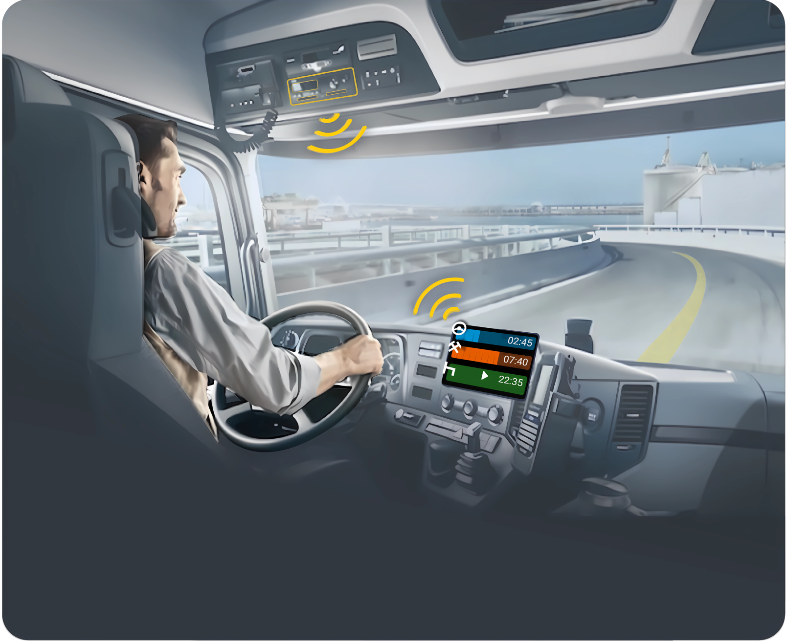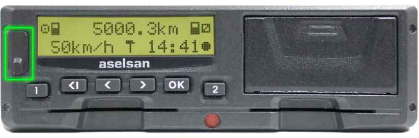 Tüm girişler ayarlandıktan sonra takograf hazırdır ve ekranda izin verilen sürüş ve dinlenme süresinin mevcut durumu gösterilir. Sürücü kartı yuvasının yanındaki (1) düğmesine uzun basıldığında, geçerli ülkenin onaylanması gerekir ve ardından sürücü kartı çıkarılır. Sürücü kartı takıldıktan sonra yukarıdaki adımlar tekrar başlayacaktır.