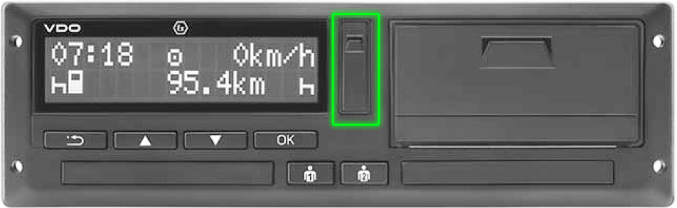 Dijital takografta iki adet kart yuvası vardır. Öncelikle sürücü kartının takografın sol tarafındaki ilk yuvaya (1) takılması gerekir. Sürücü kartının, çip kısmı yukarı bakacak şekilde yerleştirilmesi gereklidir. Takograf, sürücü kartını ve sürücü kimliğini tanıdıktan sonra sürücünün adının yer aldığı bir karşılama ekranı gösterir. Bu ekranda sorulara cevap vererek manuel giriş yapılması gerekir.